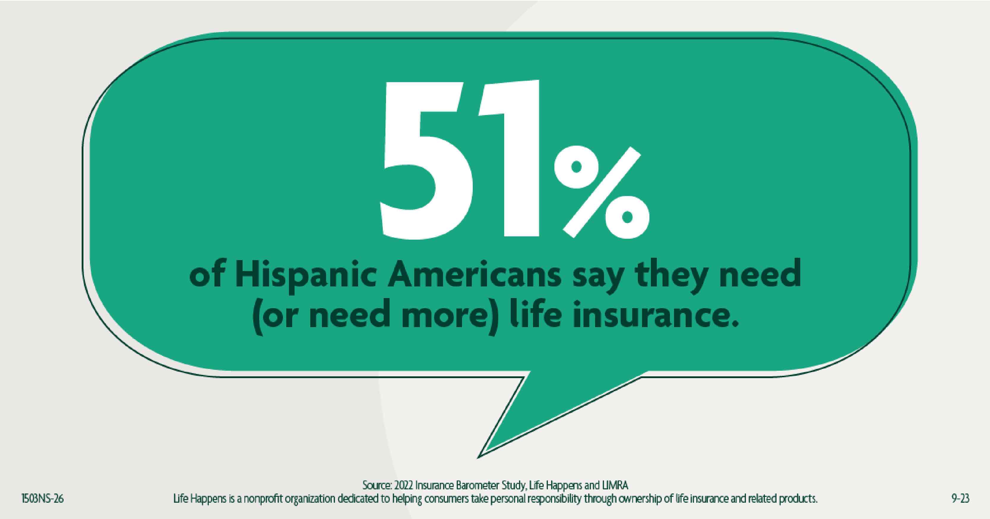 Half of Hispanic Americans say it would take six months or less to feel financial impact if the primary wage earner were to pass. Life insurance could help. Talk with me today.