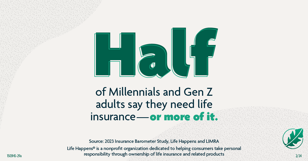 A recent survey revealed that HALF of Millennial and Gen Z adults know they need life insurance—or more of it.* To help educate these age groups on life insurance, share these consumer-friendly materials.